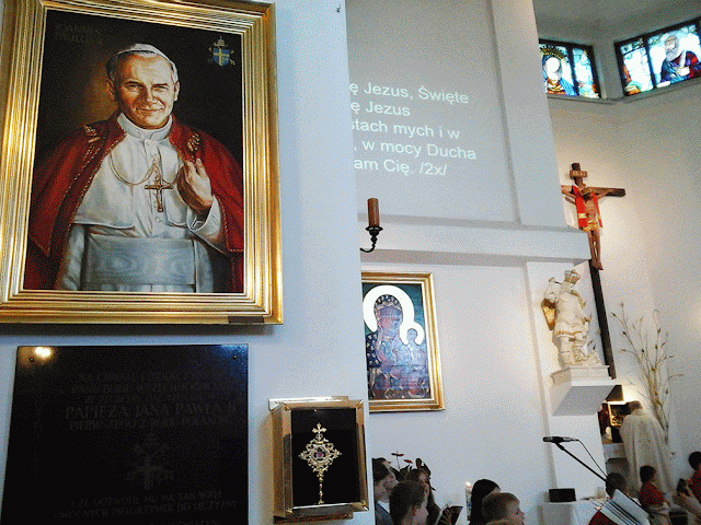 Pod koniec każdej Eucharystii przez całą niedzielę dzieliłam się krótkim świadectwem o osobistych spotkaniach z umiłowanym Papieżem Janem Pawłem II podczas najpiękniejszych Rekolekcji Oazowych mojego życia, mówiłam o ponadczasowych wartościach wynikających z nauczania Ojca Świętego, o niezwykle ciekawych wrażeniach i wartościach związanych z dosłownym dotykaniem pierwszych wieków chrześcijaństwa, a także czasu przed Chrystusem. Po Mszach Świętych z radością rozmawiałam z czytelnikami przy stoliku z książkami, wpisywałam dedykacje. Każdej takiej niedzieli dziękuję Panu Bogu i Janowi Pawłowi Wielkiemu za dar spotkań, rozmów, możliwości słuchania świadectw życia innych osób - to są wartościowe, ważne, radosne chwile :)